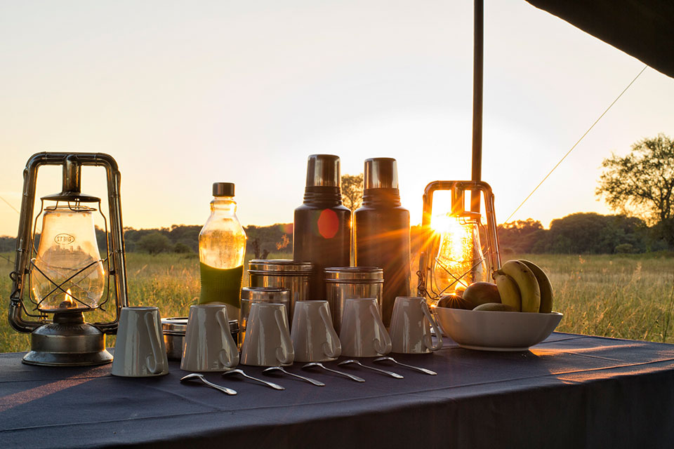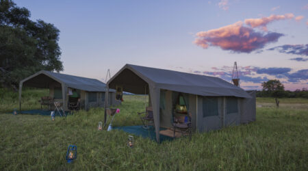 Your camp staff take care of every detail: setting up and dismantling camp, preparing wholesome meals over an open fire, and ensuring your comfort throughout. Accommodation is in spacious walk-in Meru-style tents, each with its own en-suite bucket shower and private bush loo.