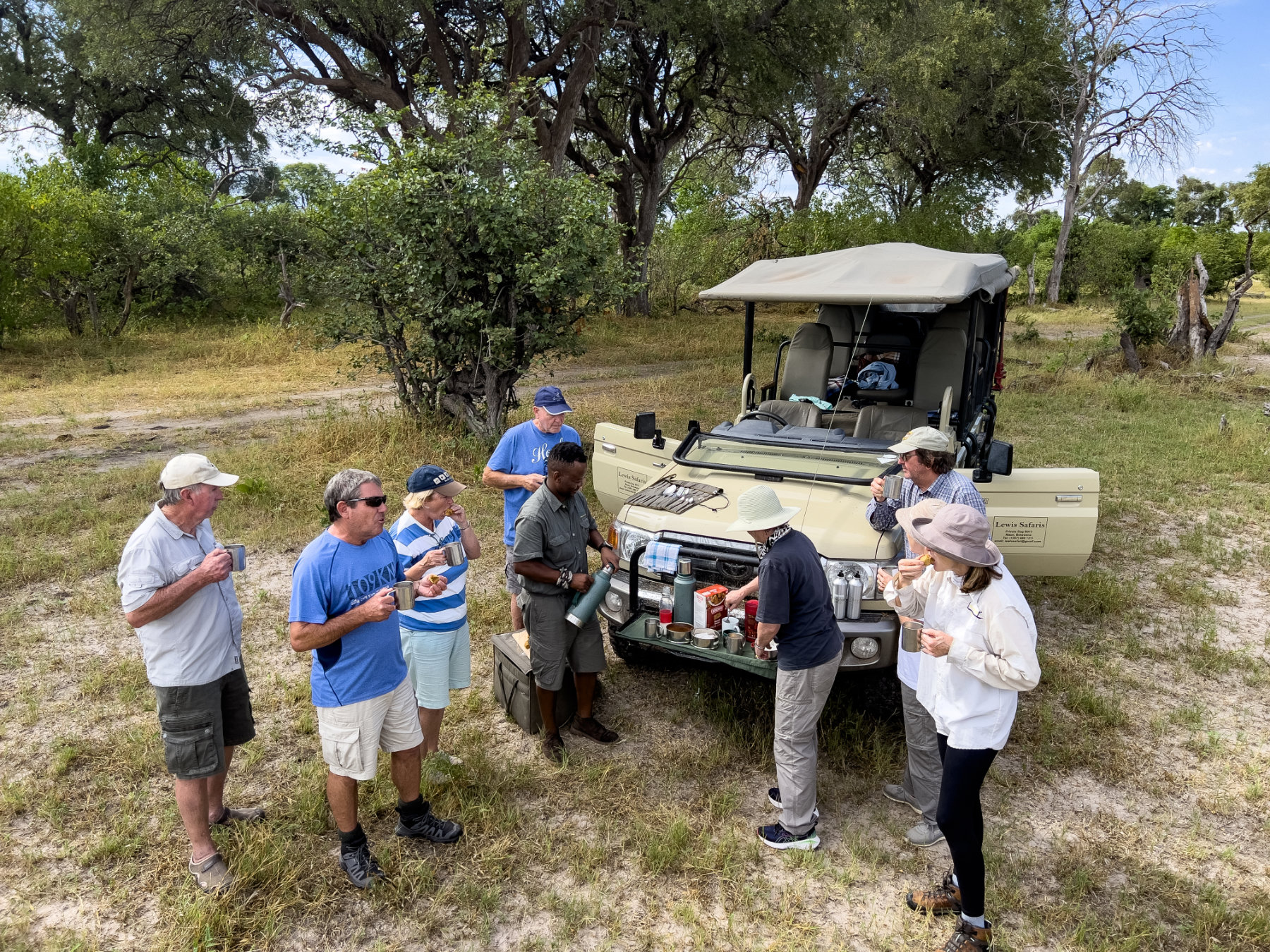 You have your own safari vehicle and professional guide and a backup team of driver, cook and camp assistant who drive in a separate vehicle.
